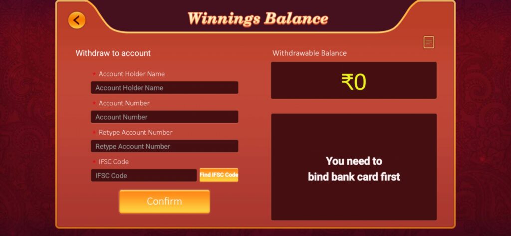 Friends, you can withdraw your money very easily from Bappa Rummy game. To withdraw, first of all you have to enter the details of your bank account.
